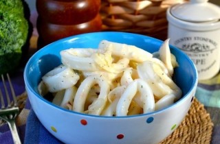 Чтобы мясо кальмаров не стало резиновым, варить их нужно не более 5 минут.