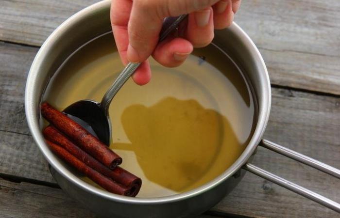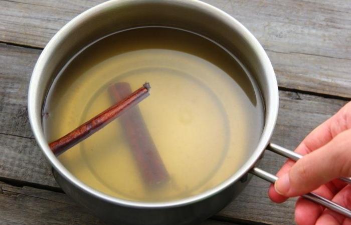 1В кастрюлю наливаем яблочный сок, добавляем корицу с гвоздикой и доводим до кипения.