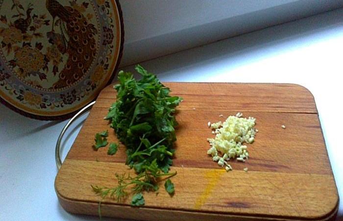 1Петрушку с чесноком измельчаем ножом.