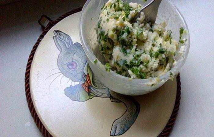 2В миске смешиваем петрушку с чесноком и добавляем масло. Солим по вкусу и тщательно перемешиваем массу.