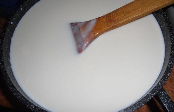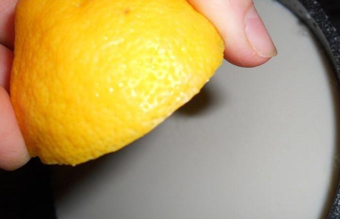 2Молоко выливаем в кастрюлю и добавляем лимонный сок. Перемешиваем и оставляем на 2 часа в теплом месте.