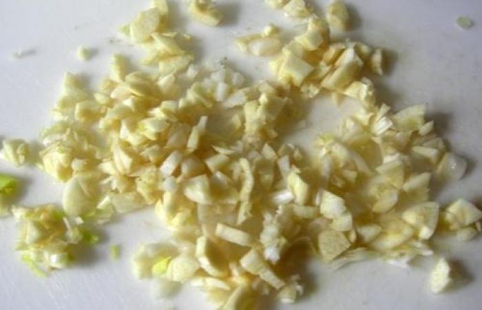 2Чеснок очищаем и рубим ножом. Добавляем в творожную массу.