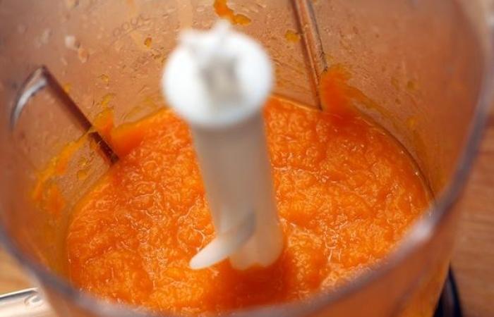3Выкладываем в чашу блендера и измельчаем до состояния однородного пюре.