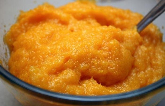 5Затем добавляем абрикосовое пюре и растворенный желатин. Тщательно все перемешиваем и ставим в холодильник, чтобы масса застыла.