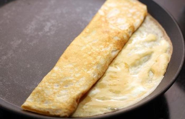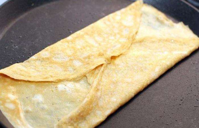 3Растапливаем сливочное масло и выливаем примерно треть получившегося теста. Когда тесто схватится - аккуратно заворачиваем края.