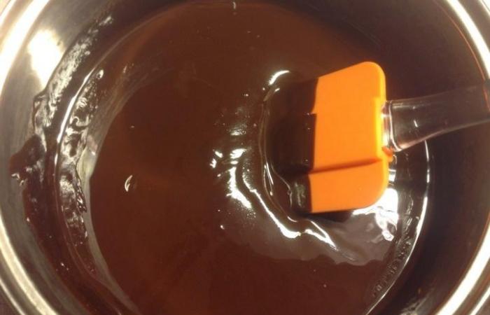 2Шоколад вместе со сливочным маслом выкладываем в миску и растапливаем на водяной бане постоянно помешивая.