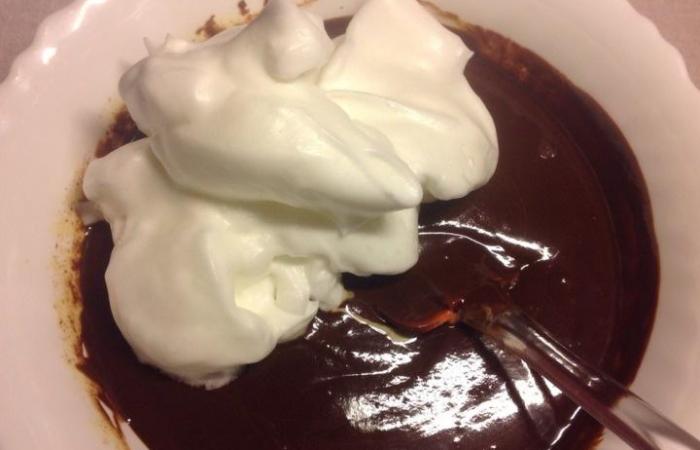 5Белки соединяем с шоколадной массой и аккуратно перемешиваем.