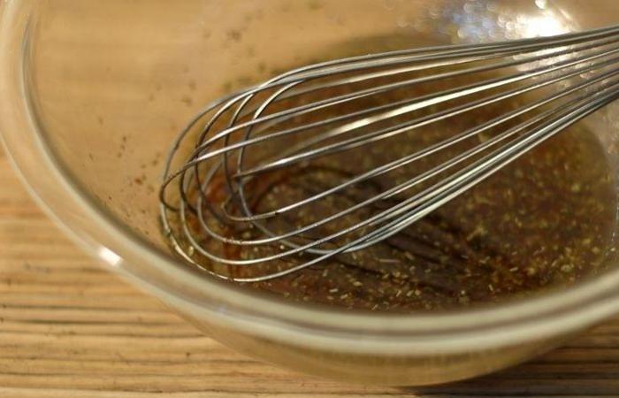 1В миске смешиваем воду, уксус, базилик, соль, перец и орегано.