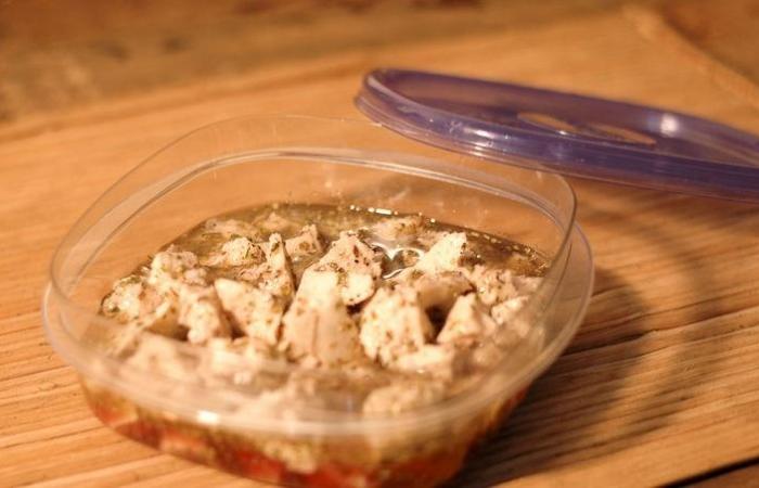 4Веганский сыр фета готов. Можно подавать сразу к столу или положить в герметический контейнер и отправить в холодильник.