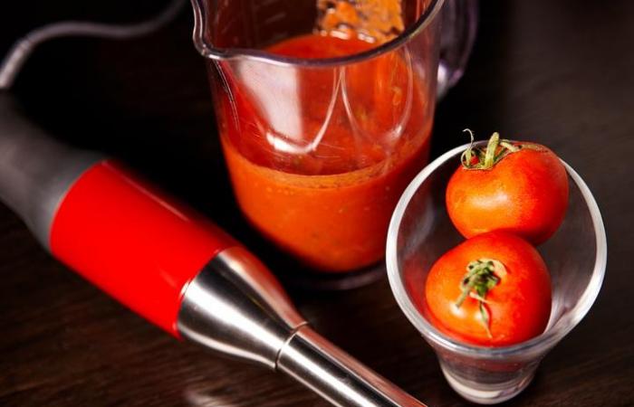 2Готовим начинку. Помидоры измельчаем с помощью блендера или протираем через сито. Добавляем измельченный чеснок, тимьян, базилик, паприку, оливковое масло и соль по вкусу. Еще раз все взбиваем до однородной консистенции.
