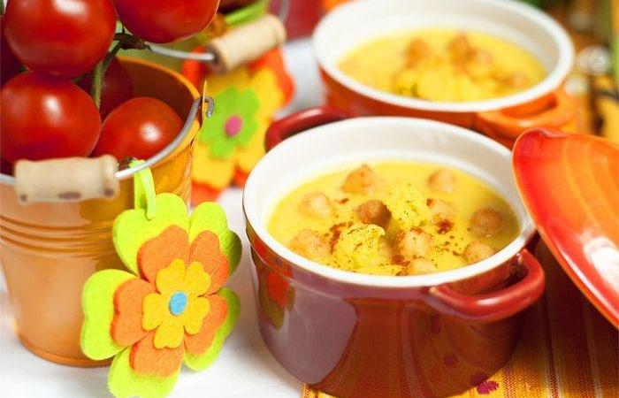 Суп-пюре из цветной капусты - вкусное и диетическое блюдо, которое сможет разнообразить повседневное меню и насытить всю семью. Наличие в супе шафрана придает блюду особенную нотку и послевкусие.