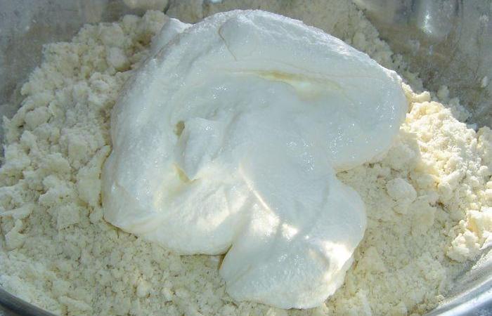 2Перетираем до образования крошки и добавляем сметану.