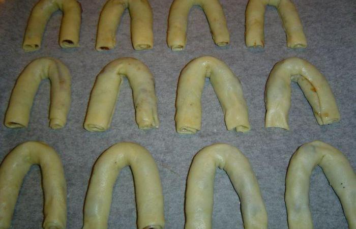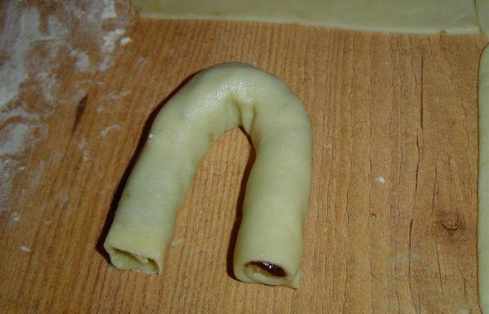 5Сворачиваем тесто рулетиком и формируем подковки-кифлики.