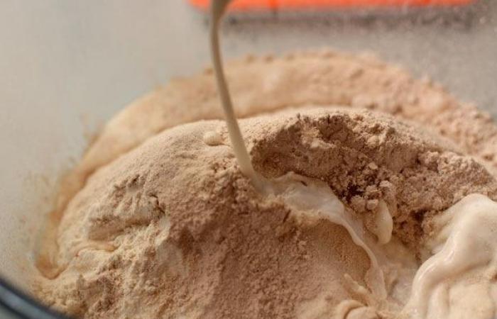1Смешиваем гречневую и пшеничную муку.