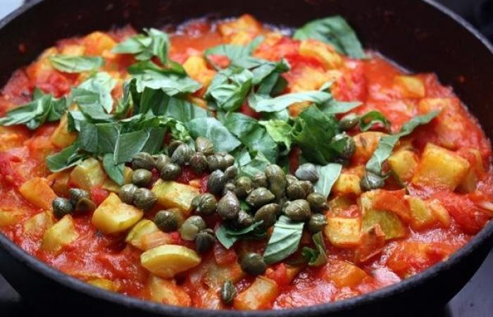 5Добавляем рубленый базилик и каперсы. Солим и перемешиваем.