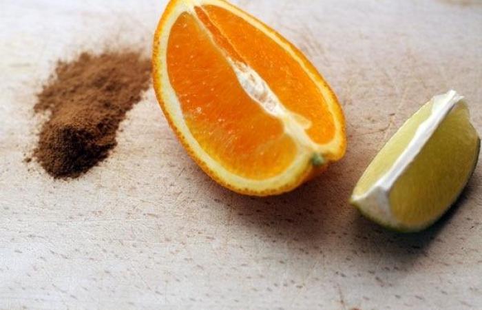 3Готовим заправку. Смешиваем апельсиновый сок с соком лайма. Добавляем масло и корицу.