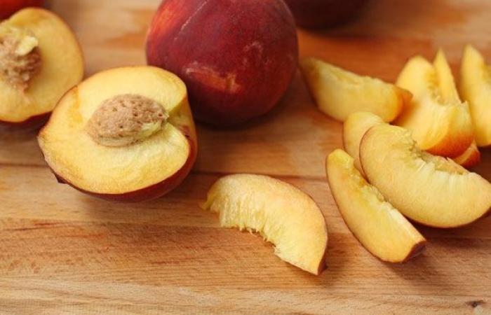 2Персики также промываем и нарезаем кусочками, удалив косточки.