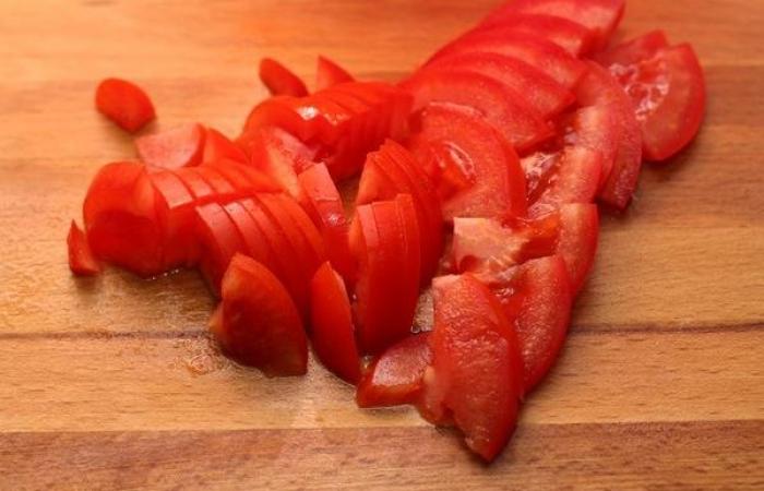 3В салатницу выкладываем помидоры и нарезанный небольшими кубиками авокадо.