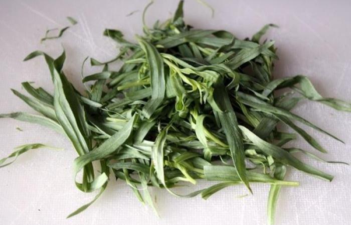 2Тем временем промываем эстрагон и измельчаем.