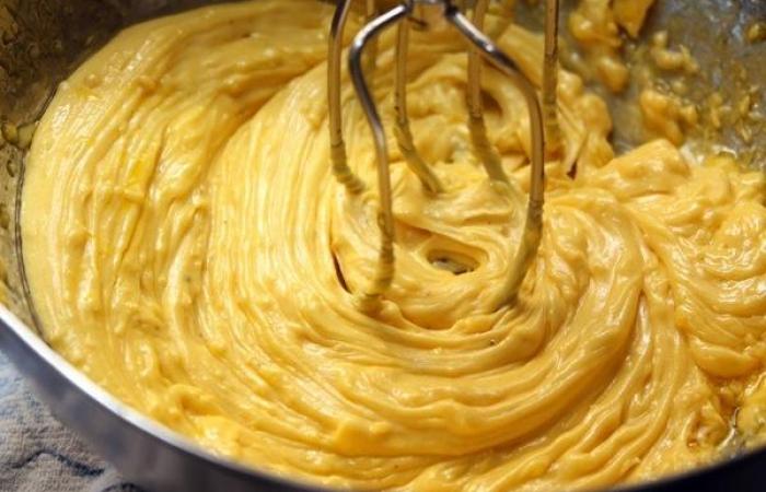 3Взбиваем смесь с помощью миксера и постепенно вливаем масло Взбиваем до однородной консистенции. В конце добавляем уксус и снова взбиваем.