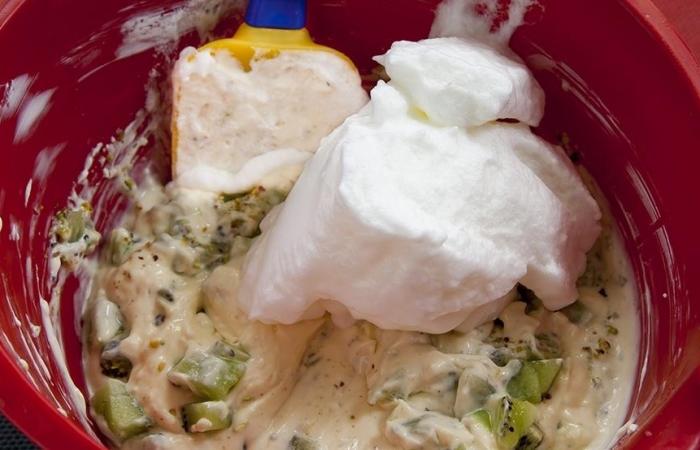 5Перемешиваем и аккуратно вводим отдельно взбитые белки.