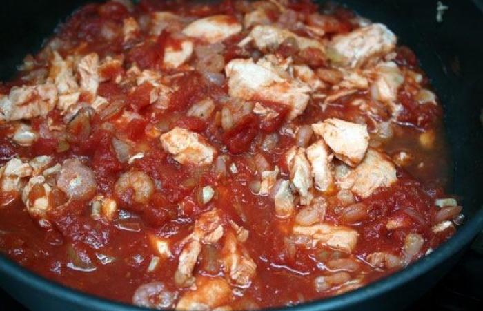 2Затем к овощам добавляем томатное пюре и тушим на медленном огне в течение 6-7 минут.