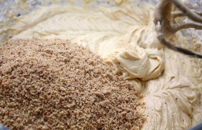 5Добавляем измельченный в блендере или пропущенный через мясорубку миндаль (100 г).