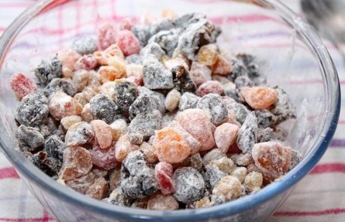 6Пропитанные ромом сухофрукты обваливаем в оставшейся муке.