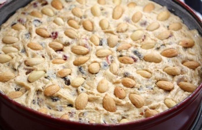 8Выкладываем тесто в форму для запекания, смазанную маслом и присыпанную мукой. Сверху выкладываем миндаль. Отправляем в духовку на час-полтора, предварительно разогретую до 160 градусов.