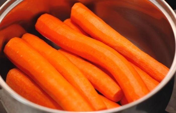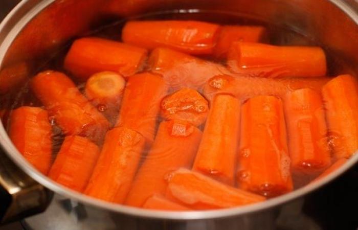 3Морковь выкладываем в кастрюлю, заливаем водой и доводим до кипения. Варим на медленном огне до мягкости.