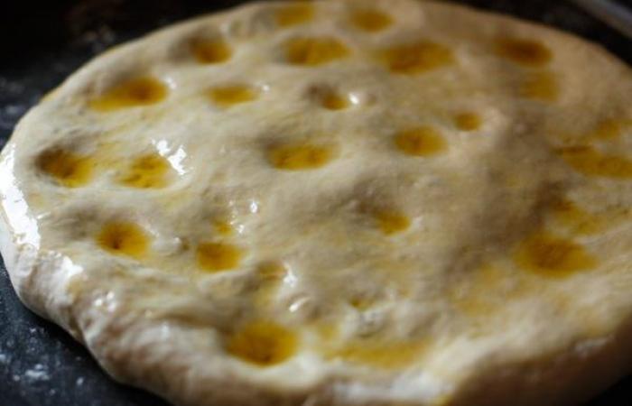 8В лепешке делаем небольшие углубления и наливаем в каждое немного оставшегося оливкового масла. Оставляем в покое на 10 минут, а затем отправляем в духовку на 30 минут, предварительно разогретую до 180 градусов.