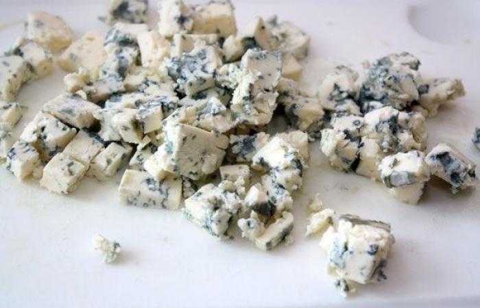3Сыр с плесенью нарезаем небольшими кубиками.