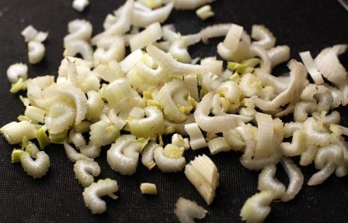 5Сельдерей нарезаем небольшими кусочками и тоже добавляем в суп.