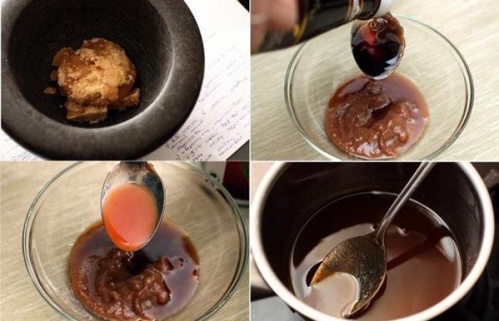 2Тем временем готовим соус. Смешиваем тамариндовую пасту с соусом чили и доводим до кипения. Добавляем рыбный соус и кокосовый сахар. Готовим смесь на медленном огне до полного растворения сахара, постоянно помешивая.