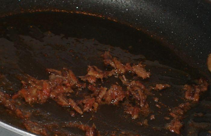 2Чеснок измельчаем и обжариваем на сковороде в течение минуты. Затем добавляем анчоусы и продолжаем обжаривать около 5 минут.