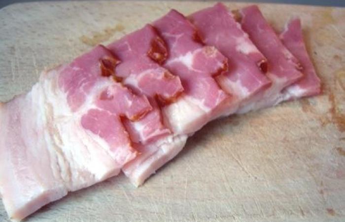 1Предварительно замачиваем фасоль в холодной воде на 5-6 часов или на всю ночь. Бекон нарезаем небольшими ломтиками.