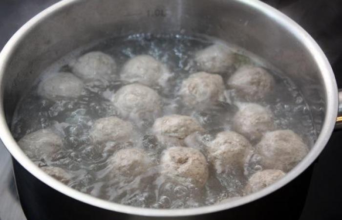 7Выкладываем тефтели в кипящую воду (500 мл) и варим в течение 5 минут.