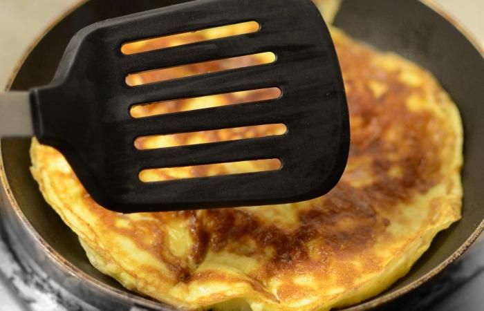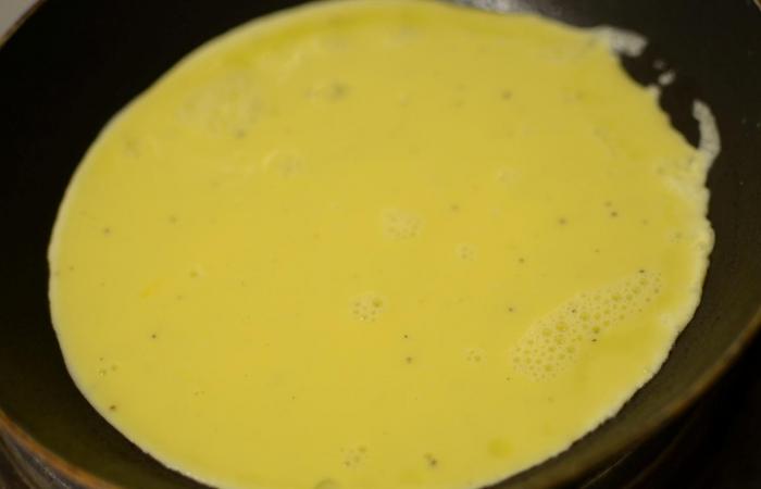 4Выливаем молочно-яичную смесь и ждем около минуты, чтобы омлет немного схватился.