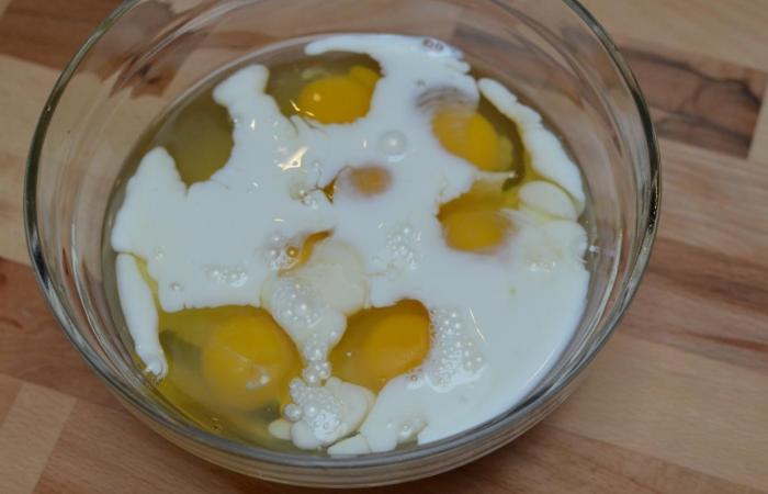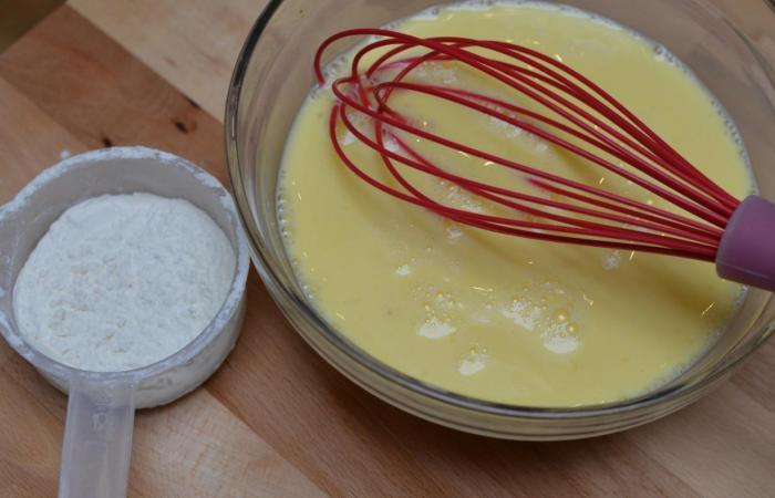 2Добавляем муку и замешиваем тесто с помощью венчика до однородной консистенции. Солим, перчим по вкусу.