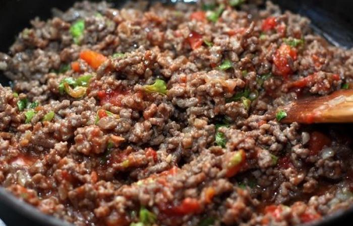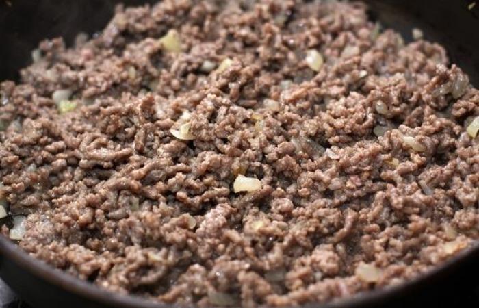 2Добавляем фарш и жарим еще в течение 7 минут, периодически помешивая.