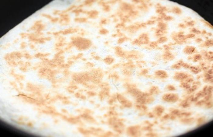 7Накрываем лепешку второй лепешкой и переворачиваем. Обжариваем в течение нескольких минут.