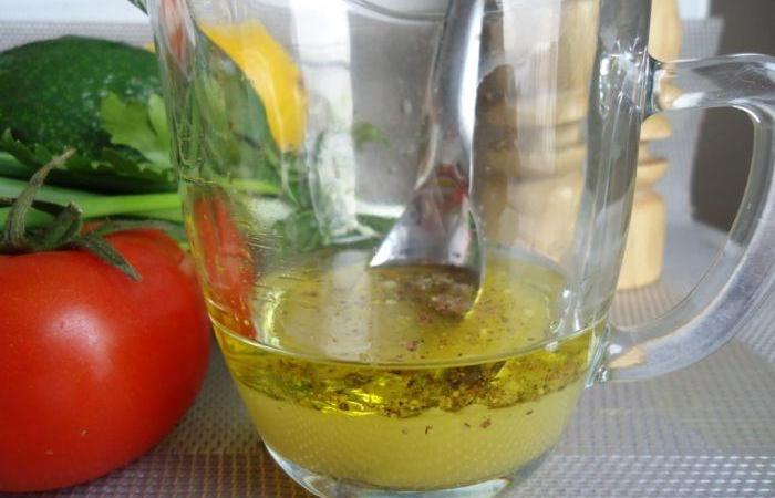 2Готовим заправку. Выжимаем сок из апельсина, добавляем оливковое масло и специи по вкусу.