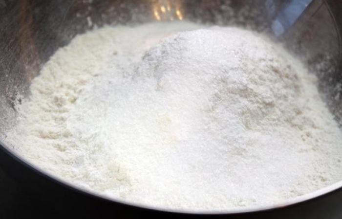 2В отдельной миске смешиваем сухие ингредиенты: муку, разрыхлитель и соль.