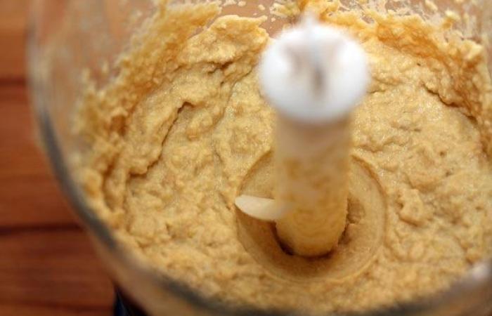 3Нут выкладываем в чашу блендера. Добавляем кунжутное и оливковое масло и измельчаем.