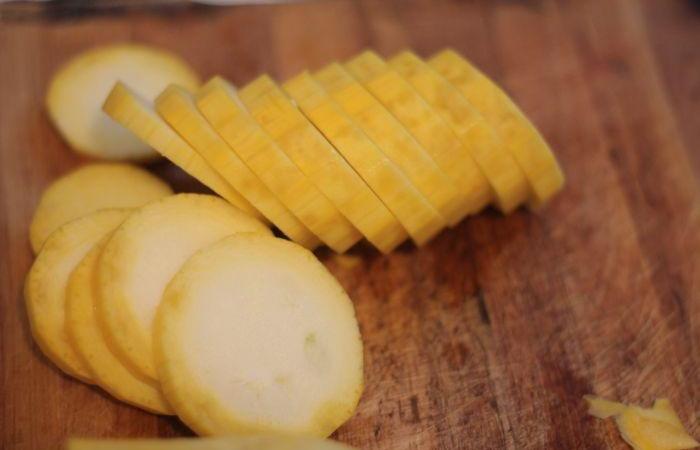 2Кабачок режем кружочками толщиной примерно 1 см.