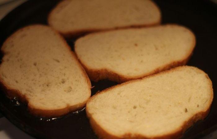 5В отдельной сковороде обжариваем ломтики батона с двух сторон.