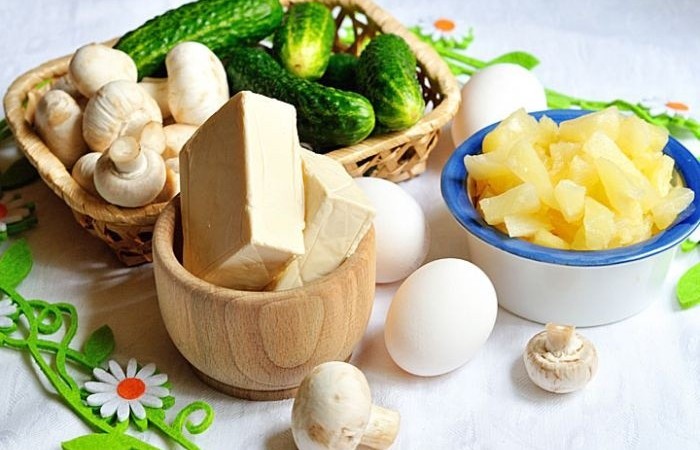 Этот изумительный салат с шампиньонами и консервированными ананасами станет прекрасным дополнением любого праздничного стола. Салат оригинальный и довольно необычный по вкусу. Плавленый сыр с огурцами вносят свою изюминку и обогащают вкус салата.
