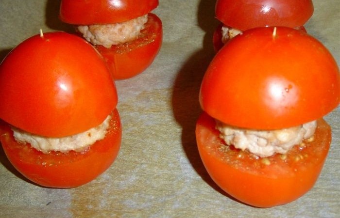 В данном рецепте представлен оригинальный гамбургер, где вместо привычных булочек используются помидоры. Закуска получается нежной, ароматной и просто обалденной!