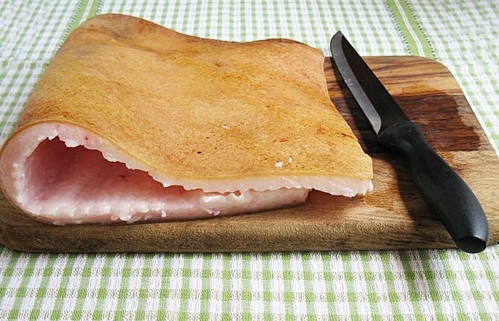 2Срезай лишний слой сала, оставляя буквально 1 см.