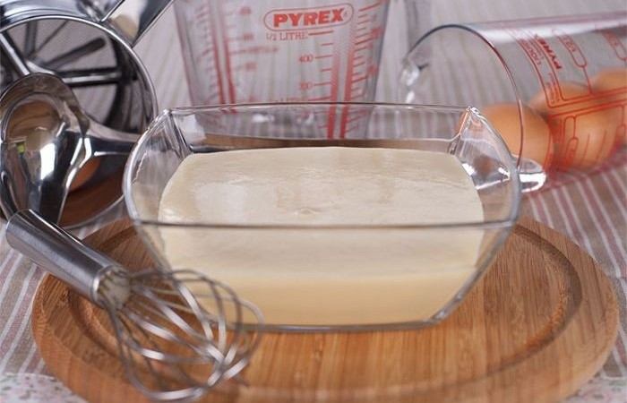 2Яйца смешиваем с сахаром и молоком. Постепенно добавляем муку с разрыхлителем. Размешиваем все с помощью блендера до получения однородной массы.